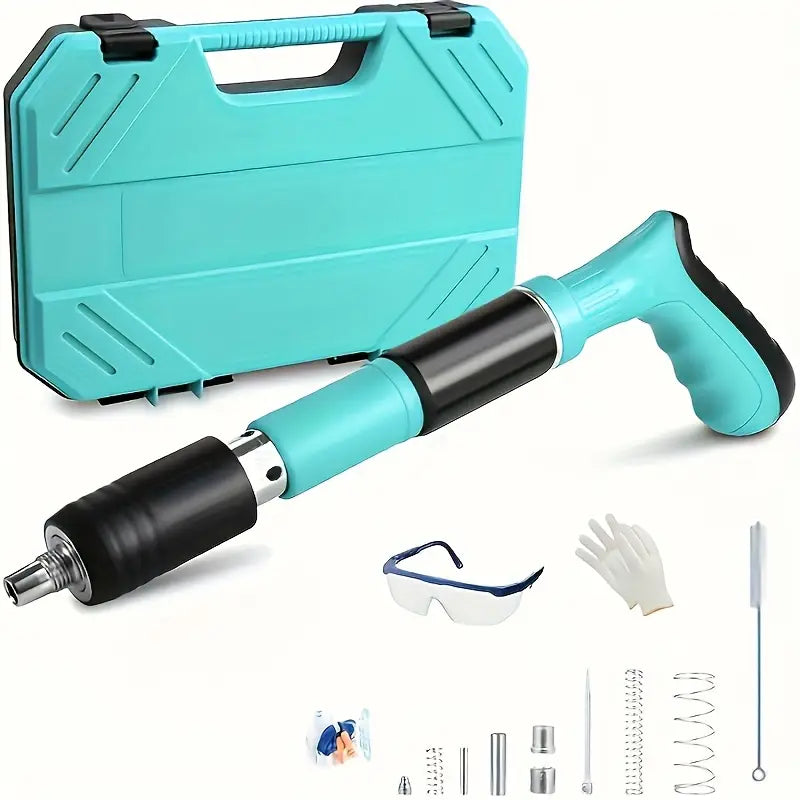🎁 Kit completo incluido – maleta, gafas, repuestos y 20 clavos, calibre .22.